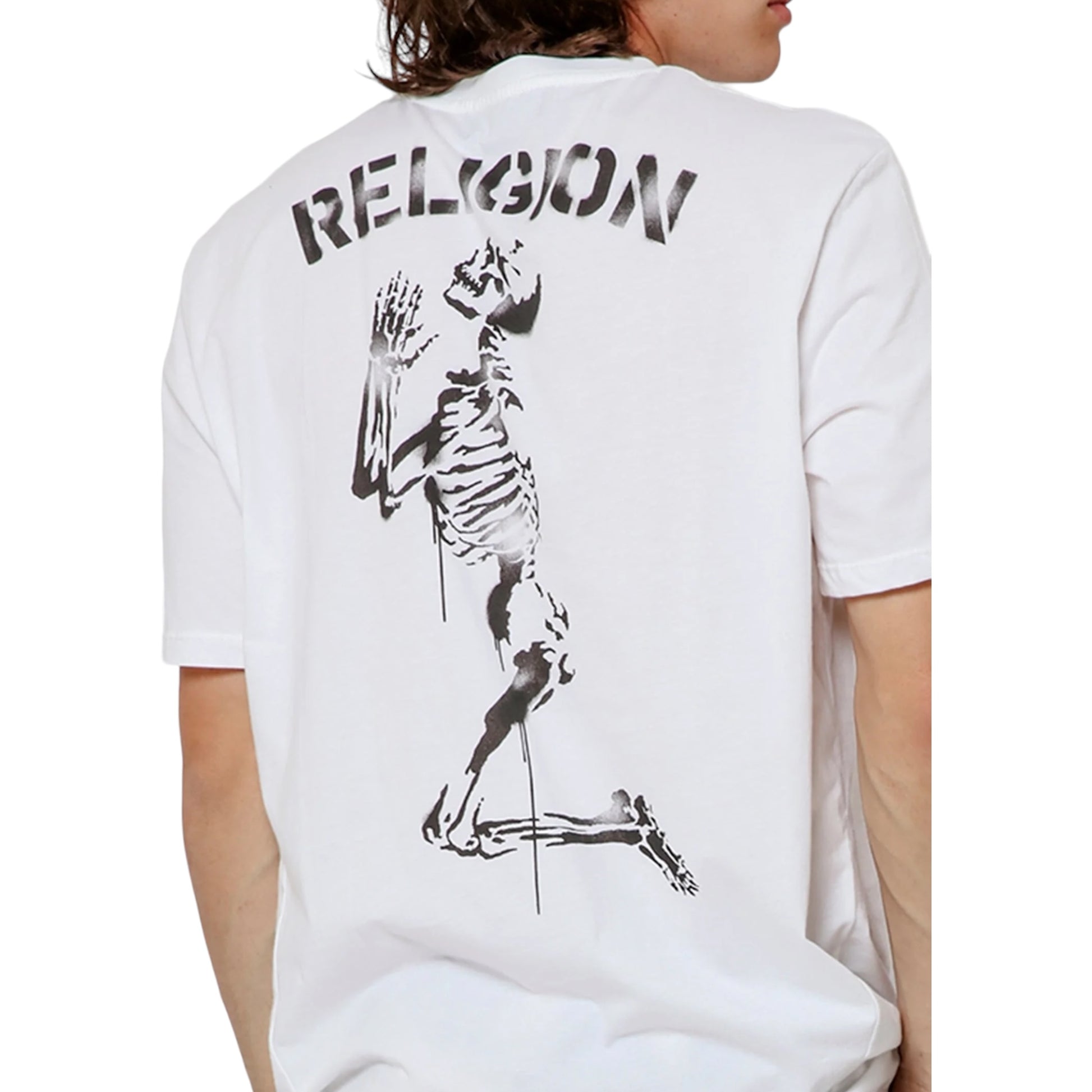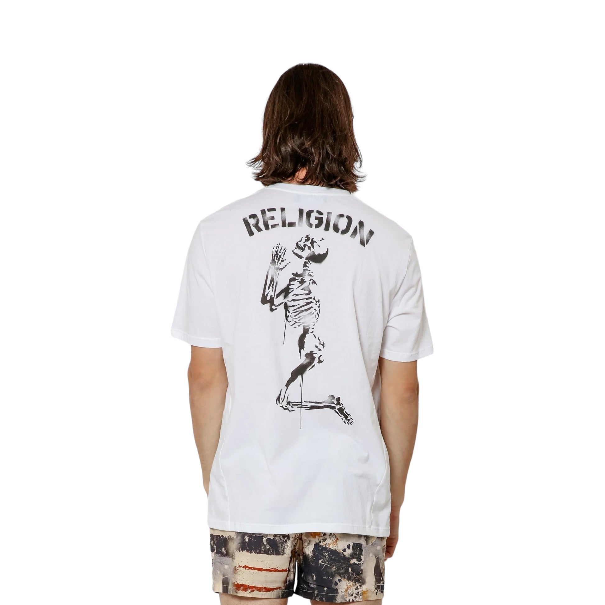 Go graphic with our Praying Skeleton t-shirt in white. Crafted from 100% soft cotton and shaped to a comfortable regular fit. Featuring our praying skeleton graphic on the front and back.