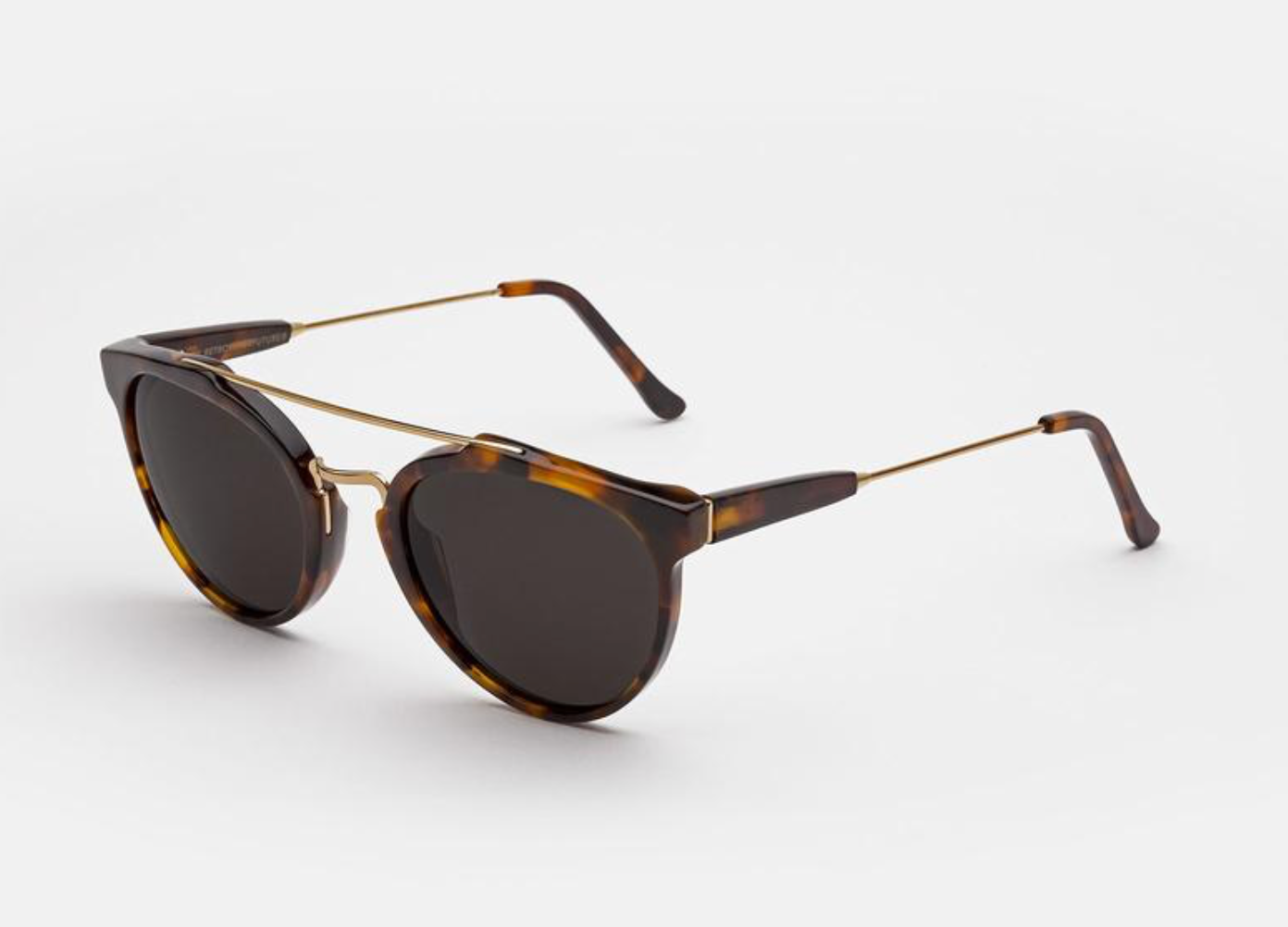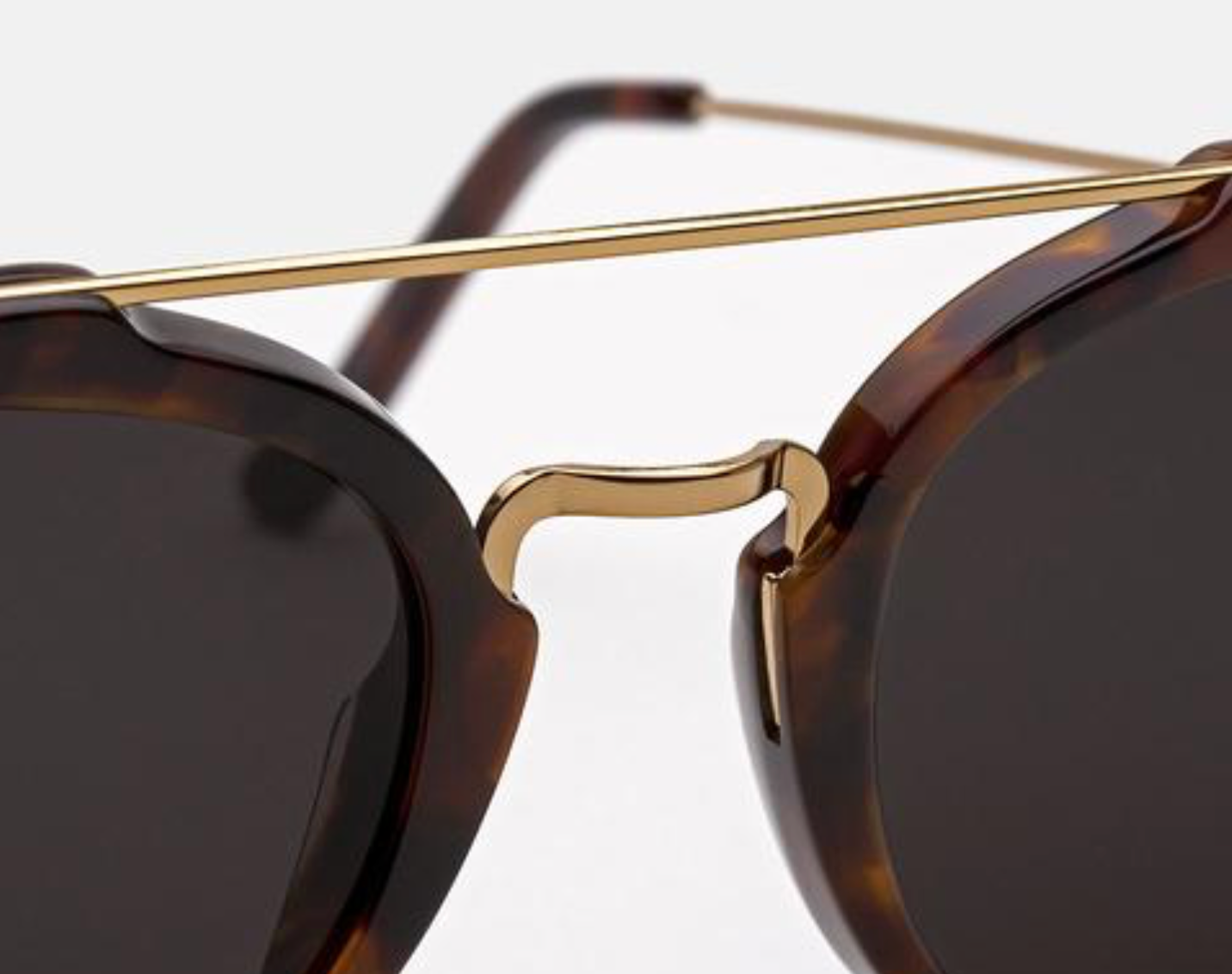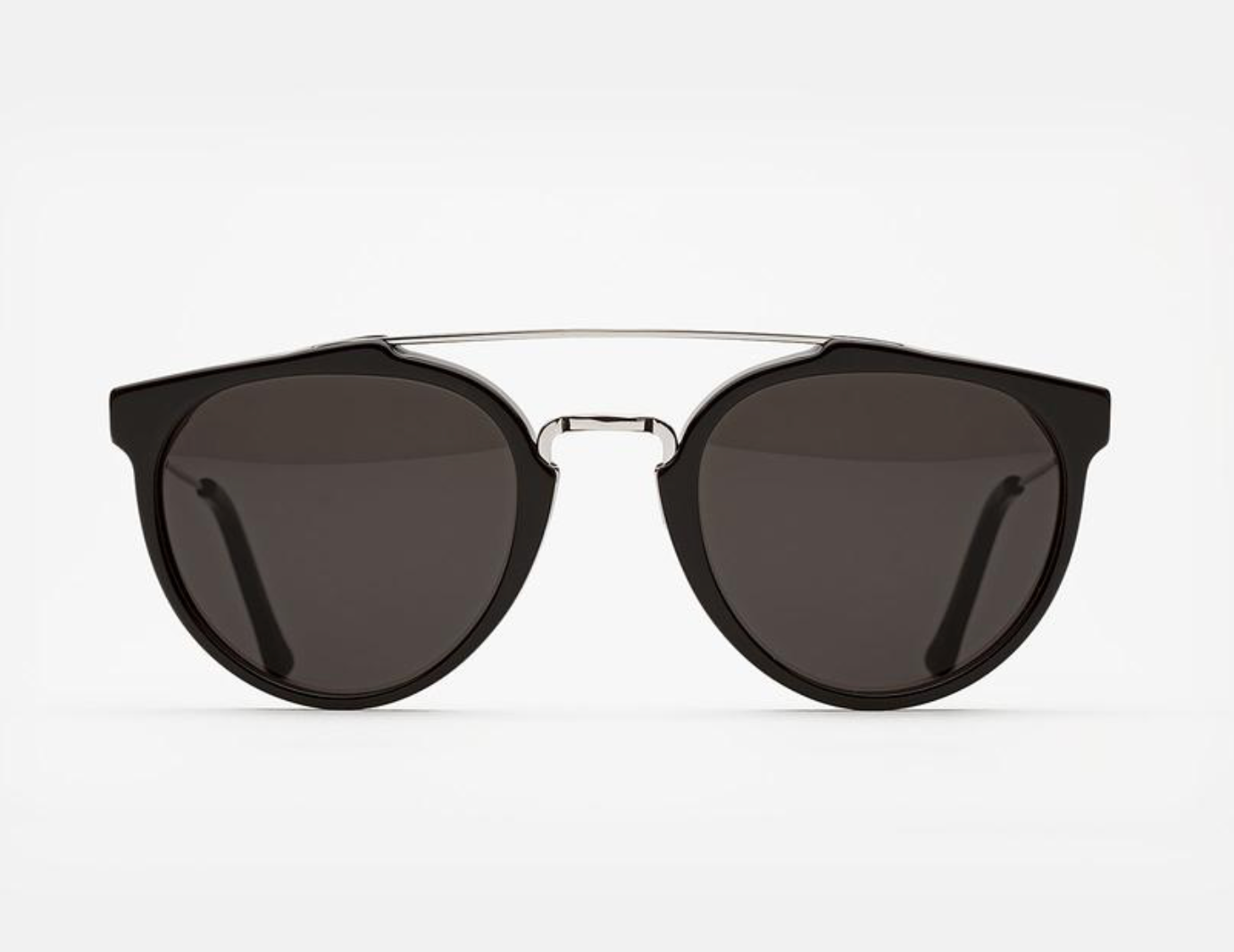 Occhiali da sole in acetato con ponte e nasello in metallo.