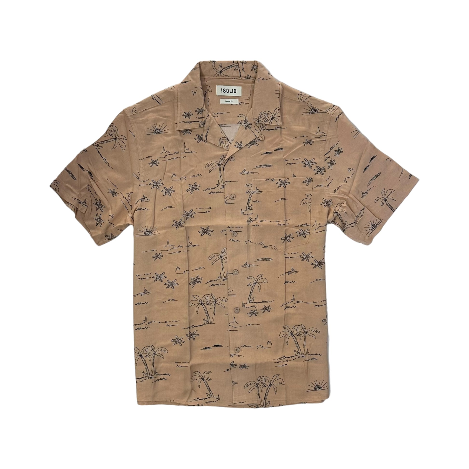 Camicia mezza manica realizzata in viscosa con collo bowling. Chiusura frontale con bottoni e taschino a toppa. Vestibilità regular.