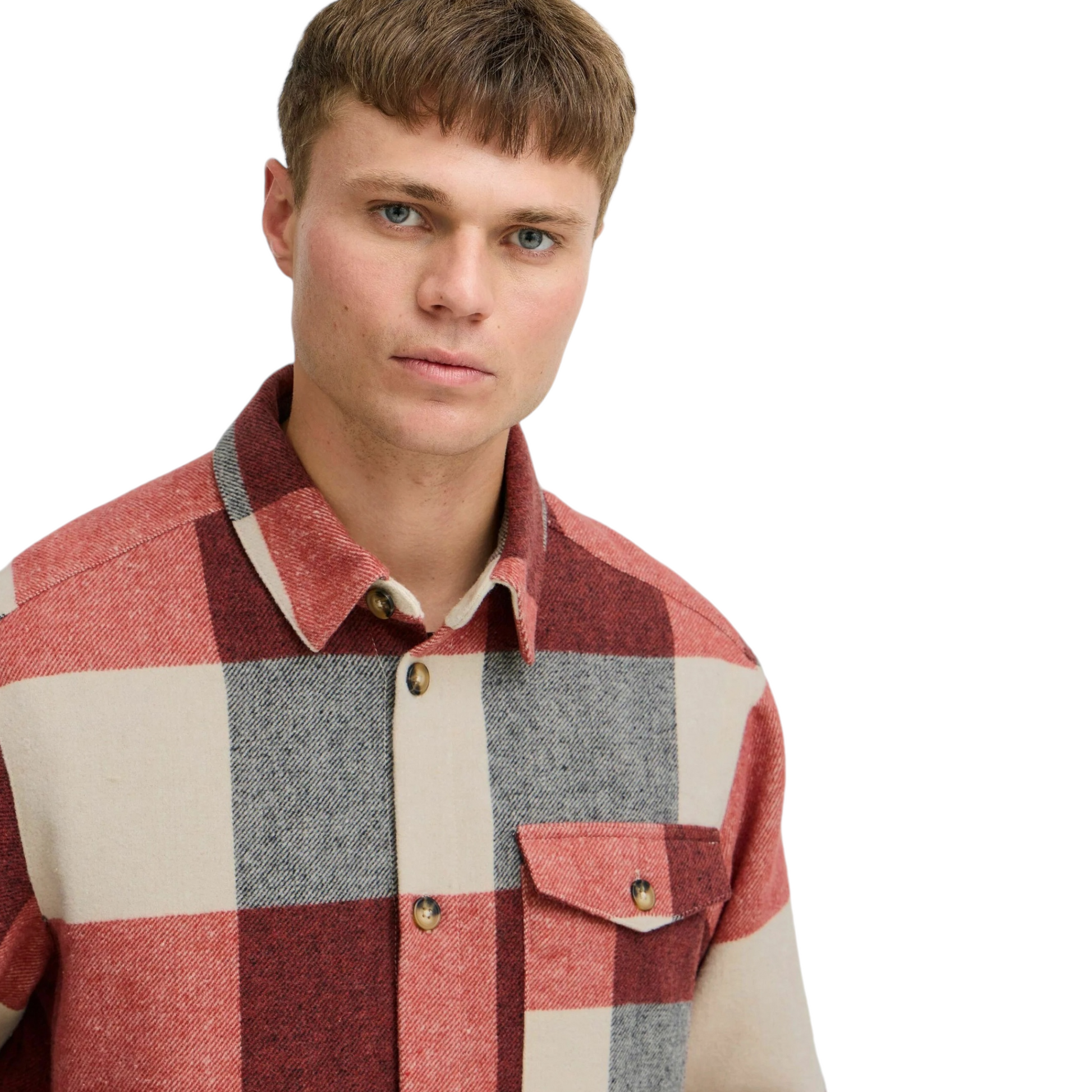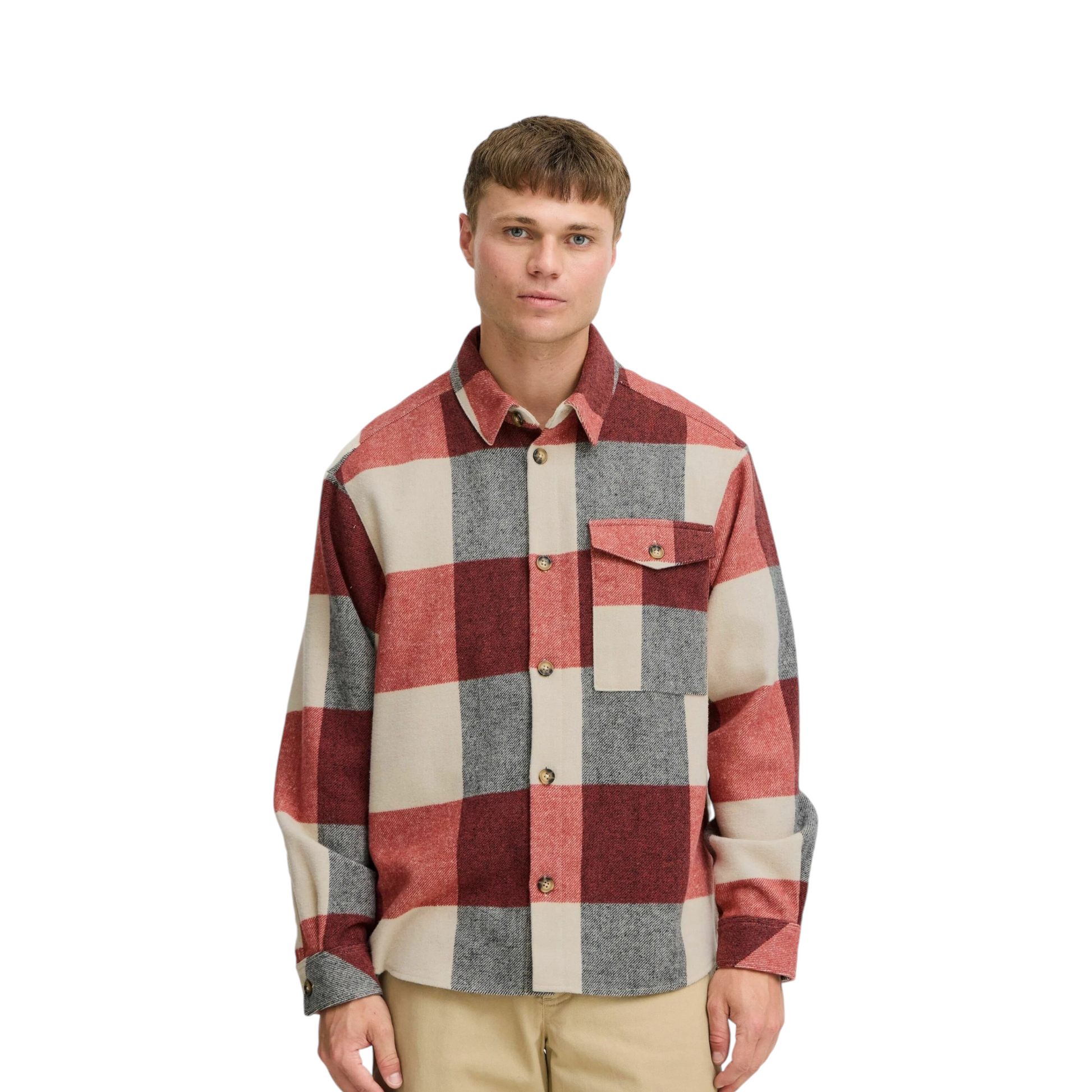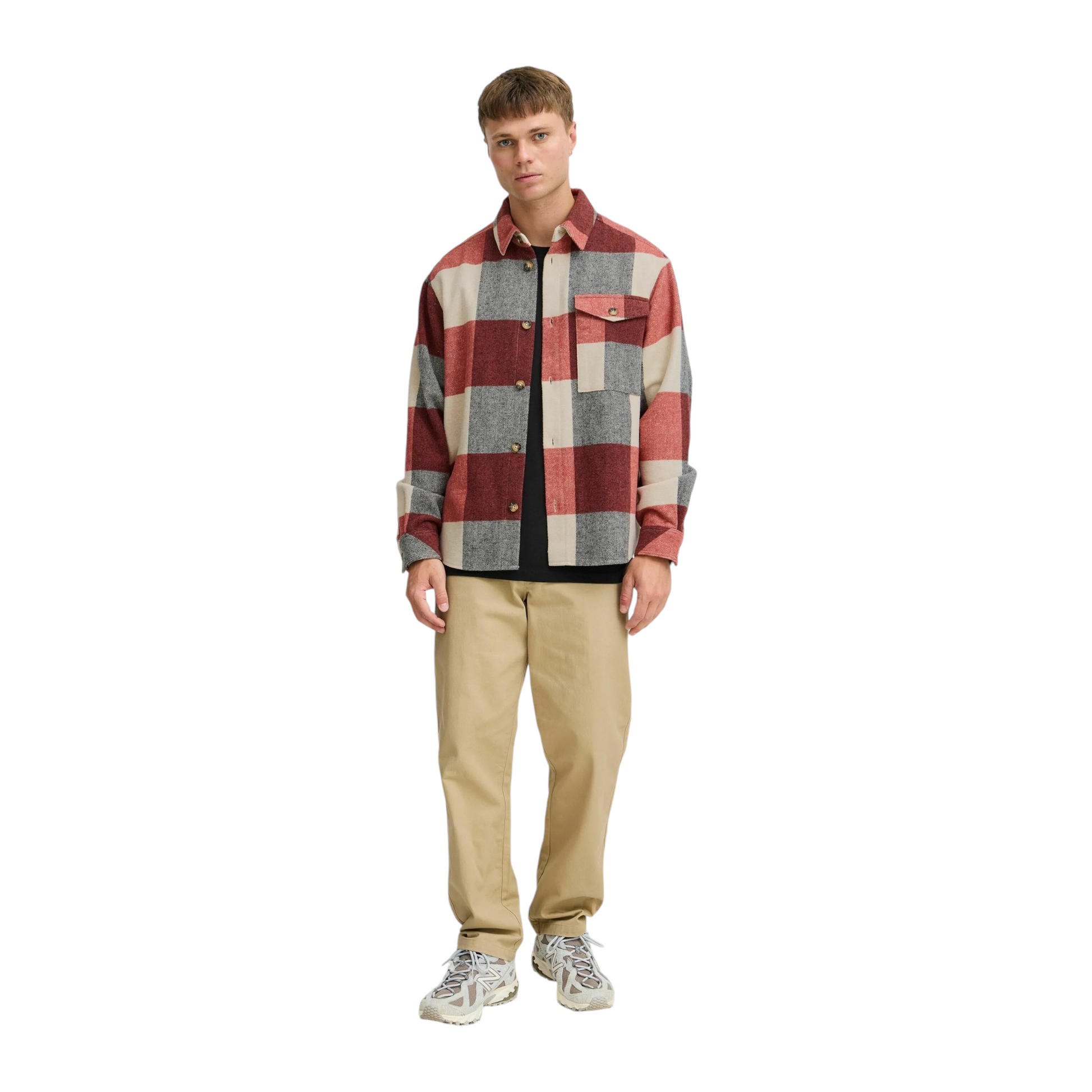 Giacca / camicia con tasche frontali a toppa e chiusura con bottoni. Vestibilità box fit.