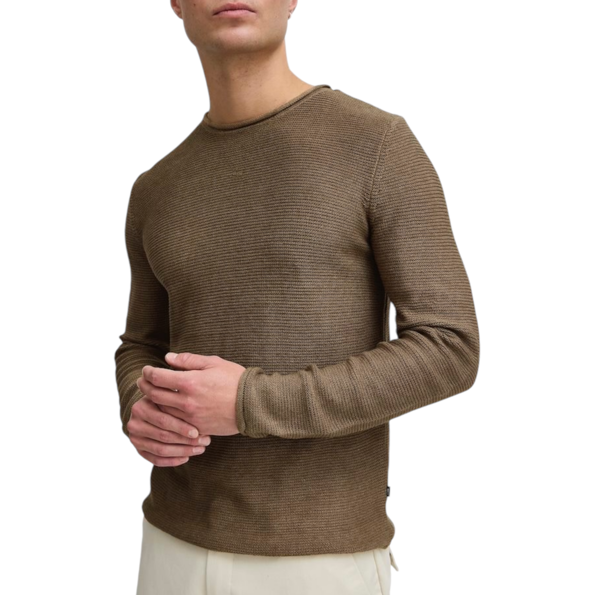 Maglia realizzata in cotone e acrilico. Manica lunga con collo, fondo e polsini a rollino.