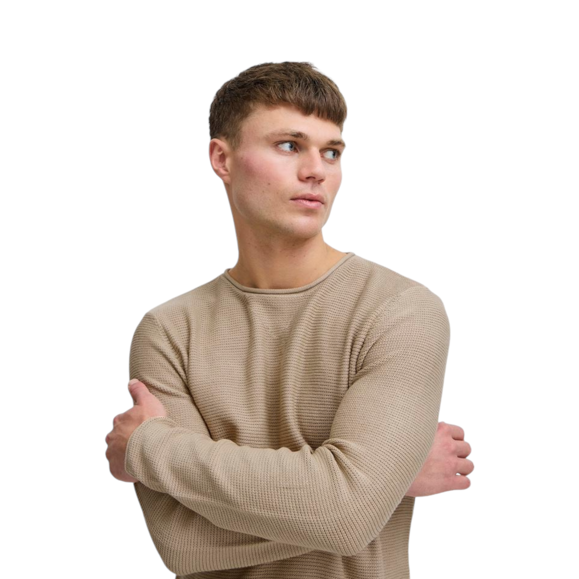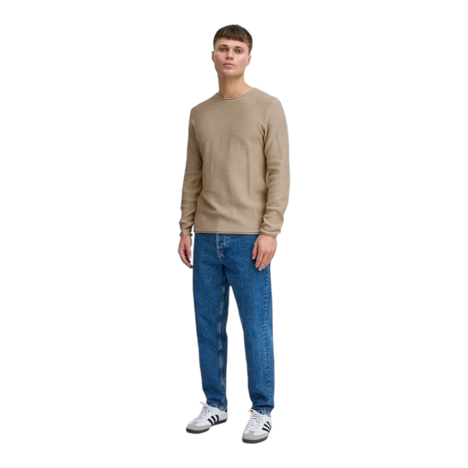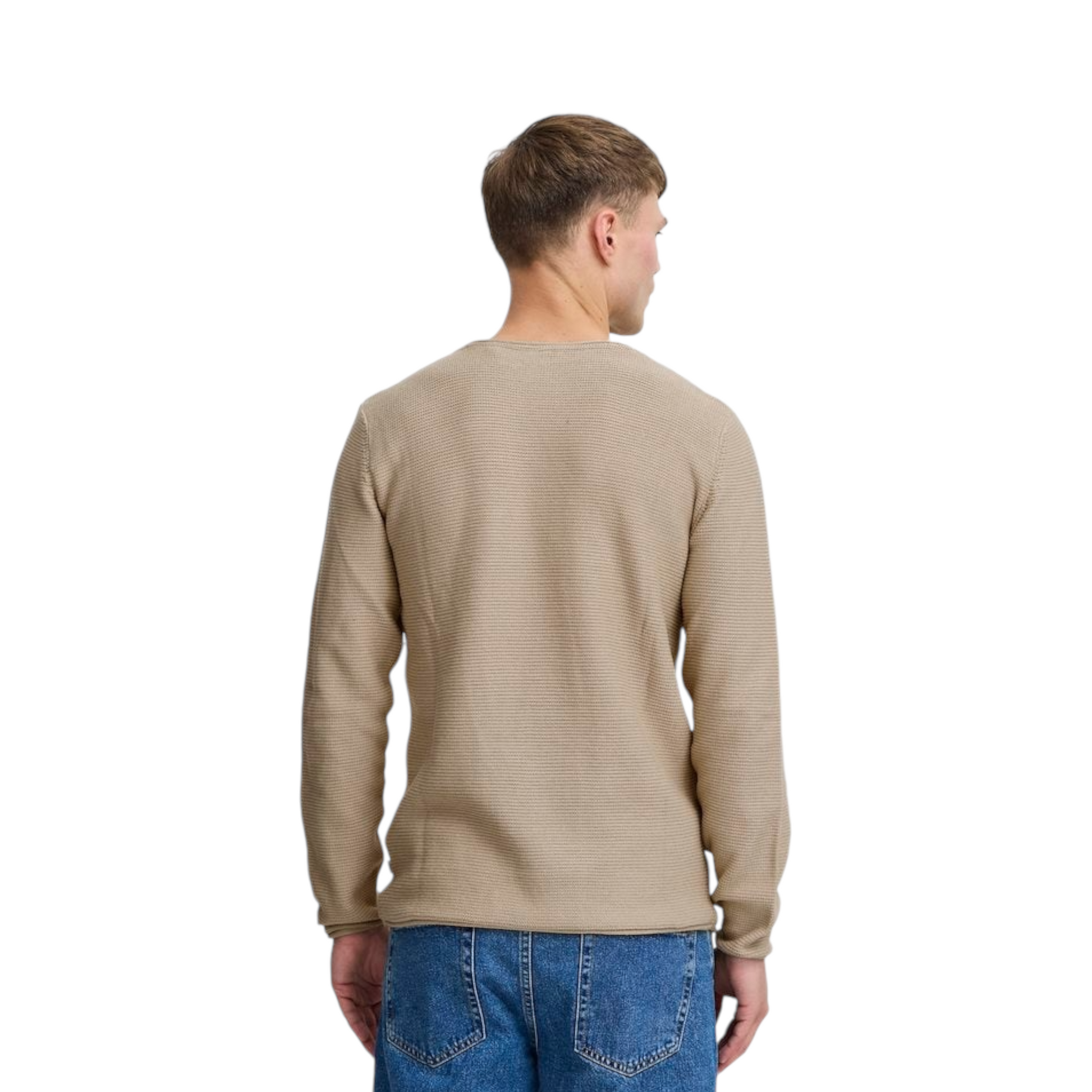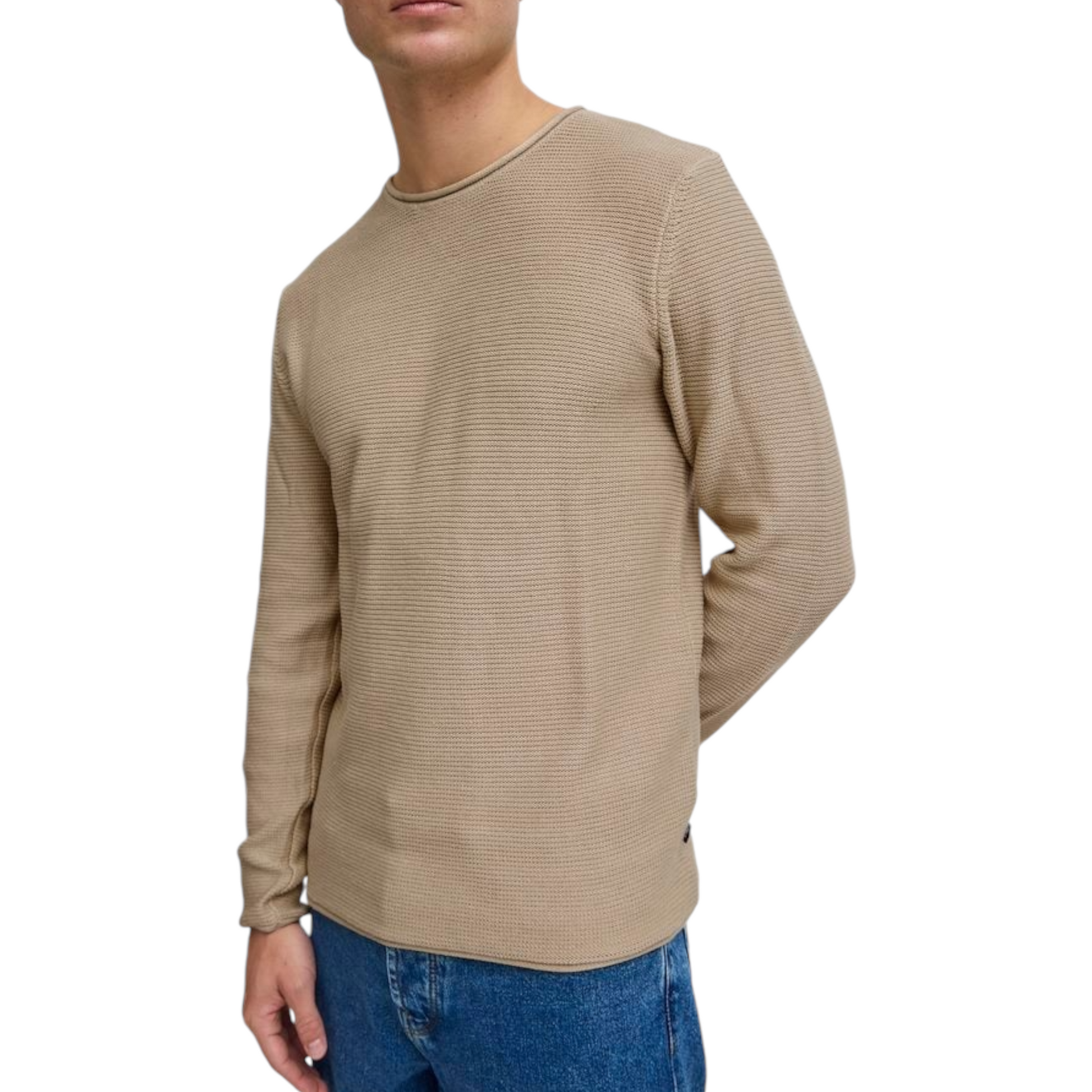 Maglia realizzata in cotone e acrilico. Manica lunga con collo, fondo e polsini a rollino.