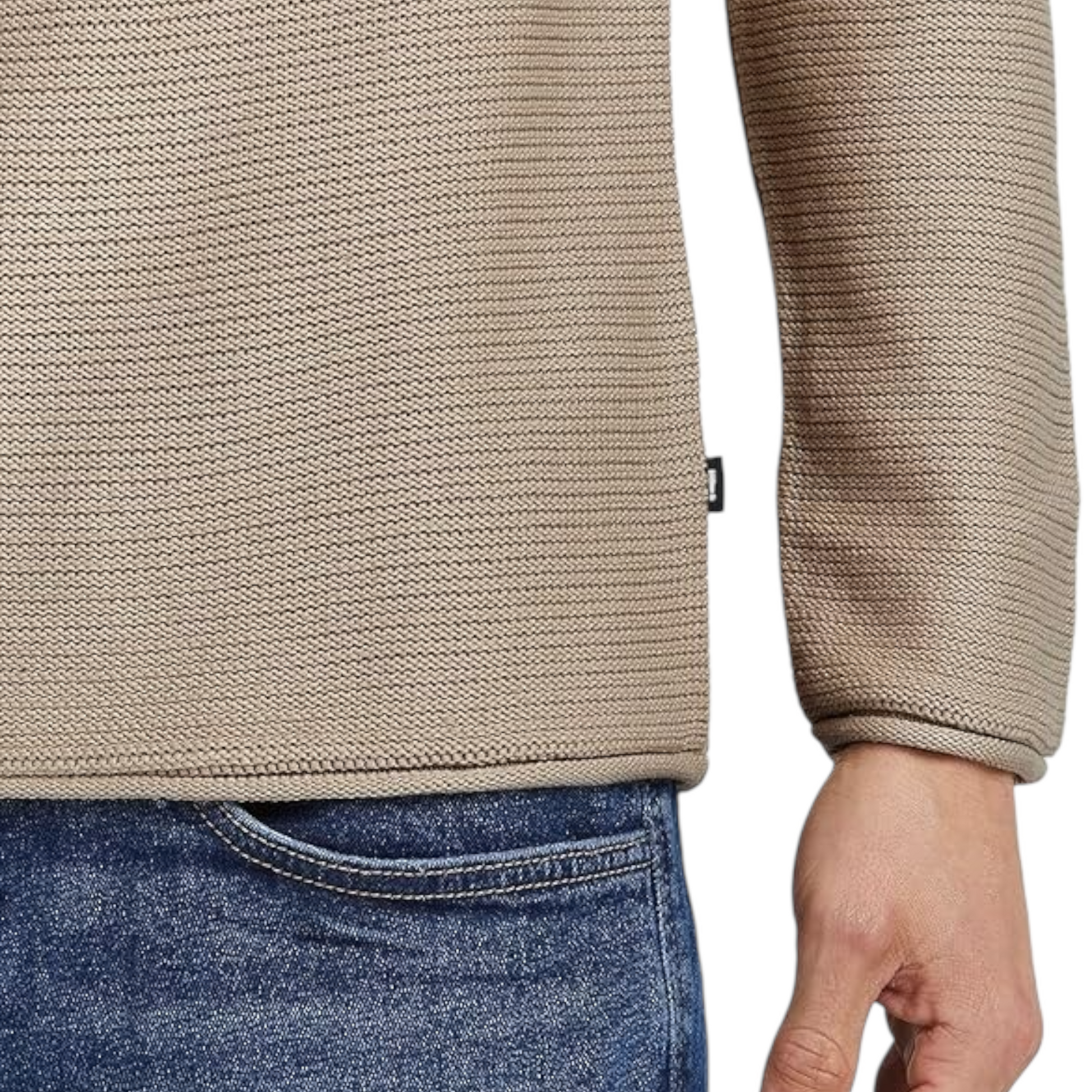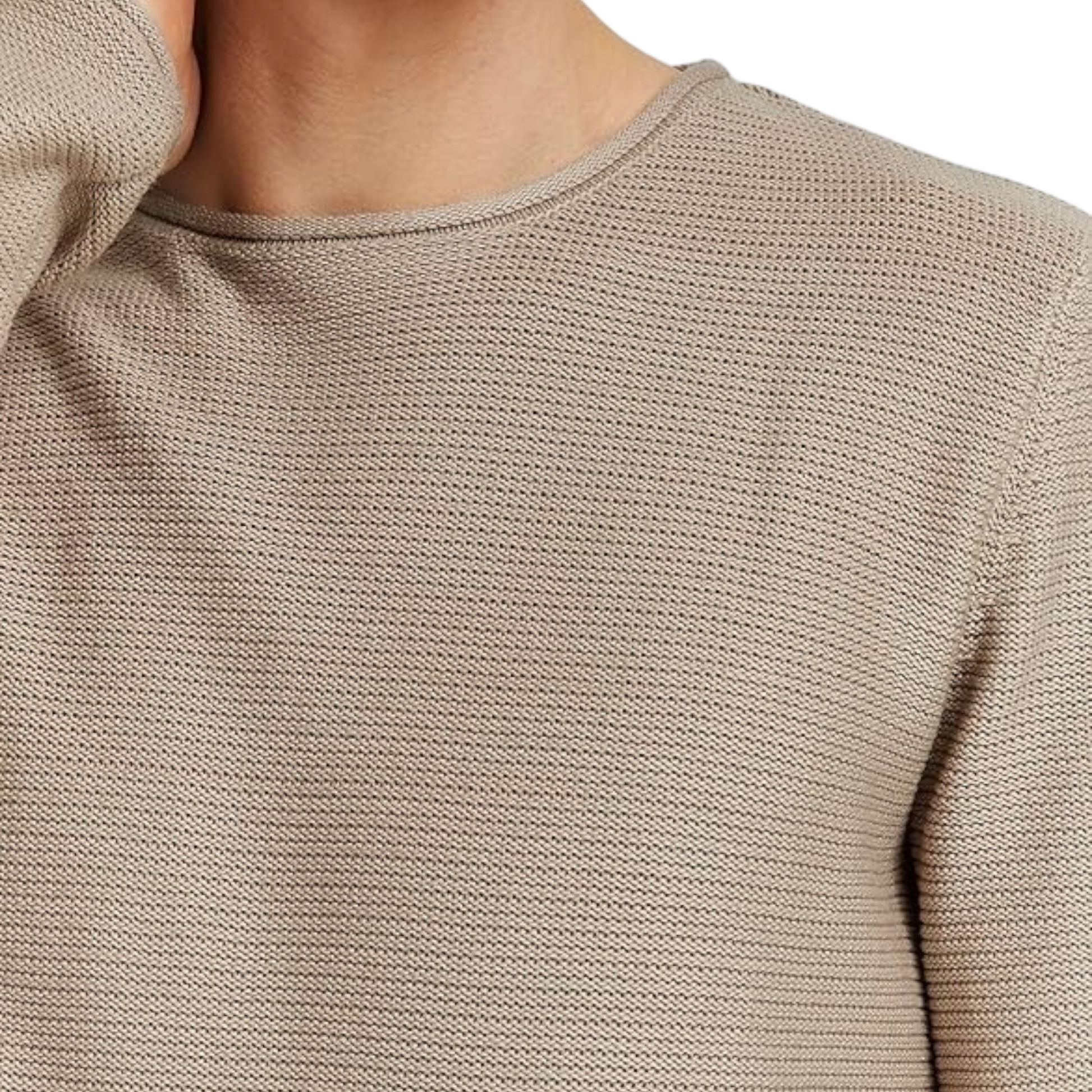 La maglia Jarah è realizzata in misto cotone, garantendo traspirabilità e comfort durante tutta la giornata. Il design presenta maniche lunghe e dettagli a rollino su collo, fondo e polsini, offrendo una silhouette raffinata e curata, perfetta per un look professionale ed elegante.