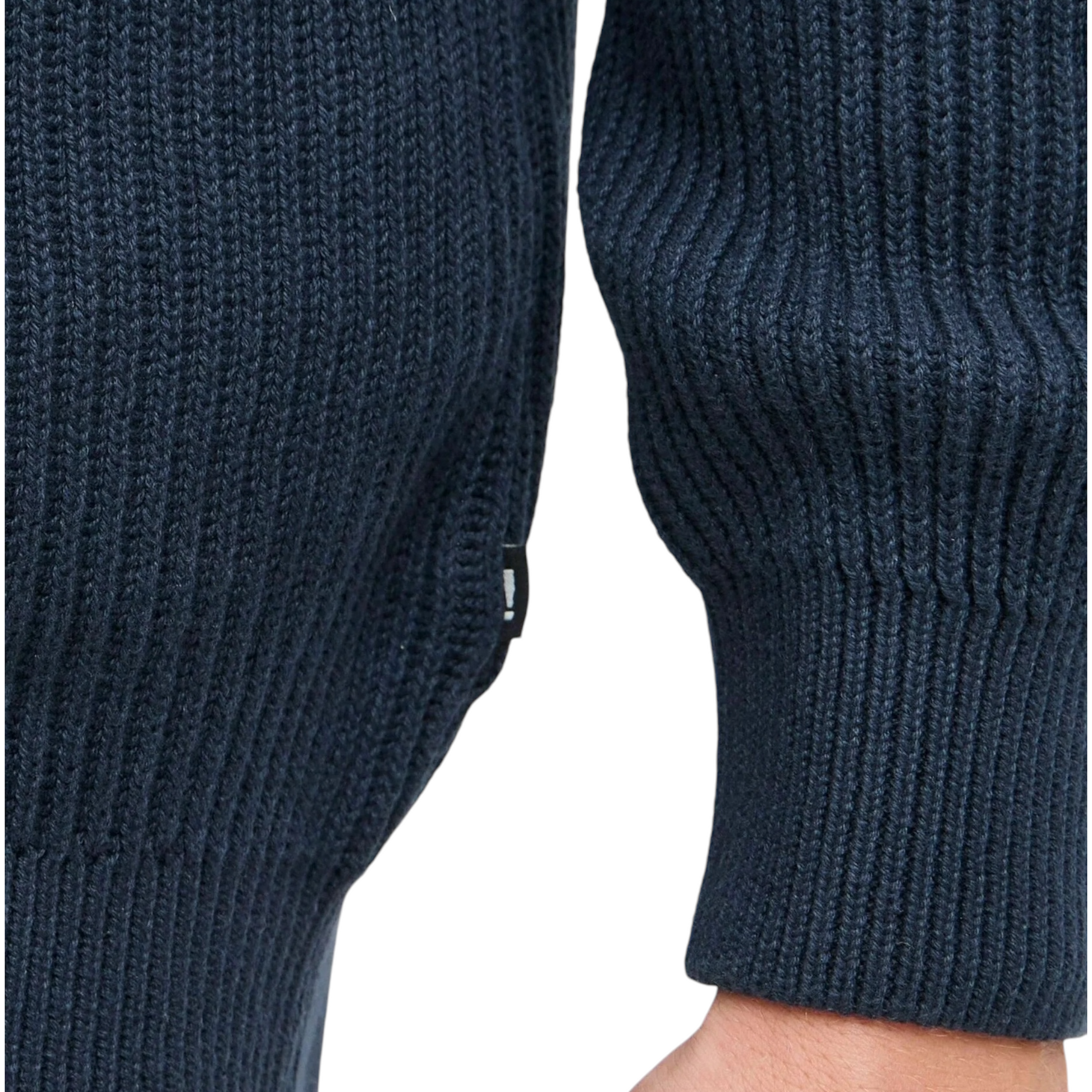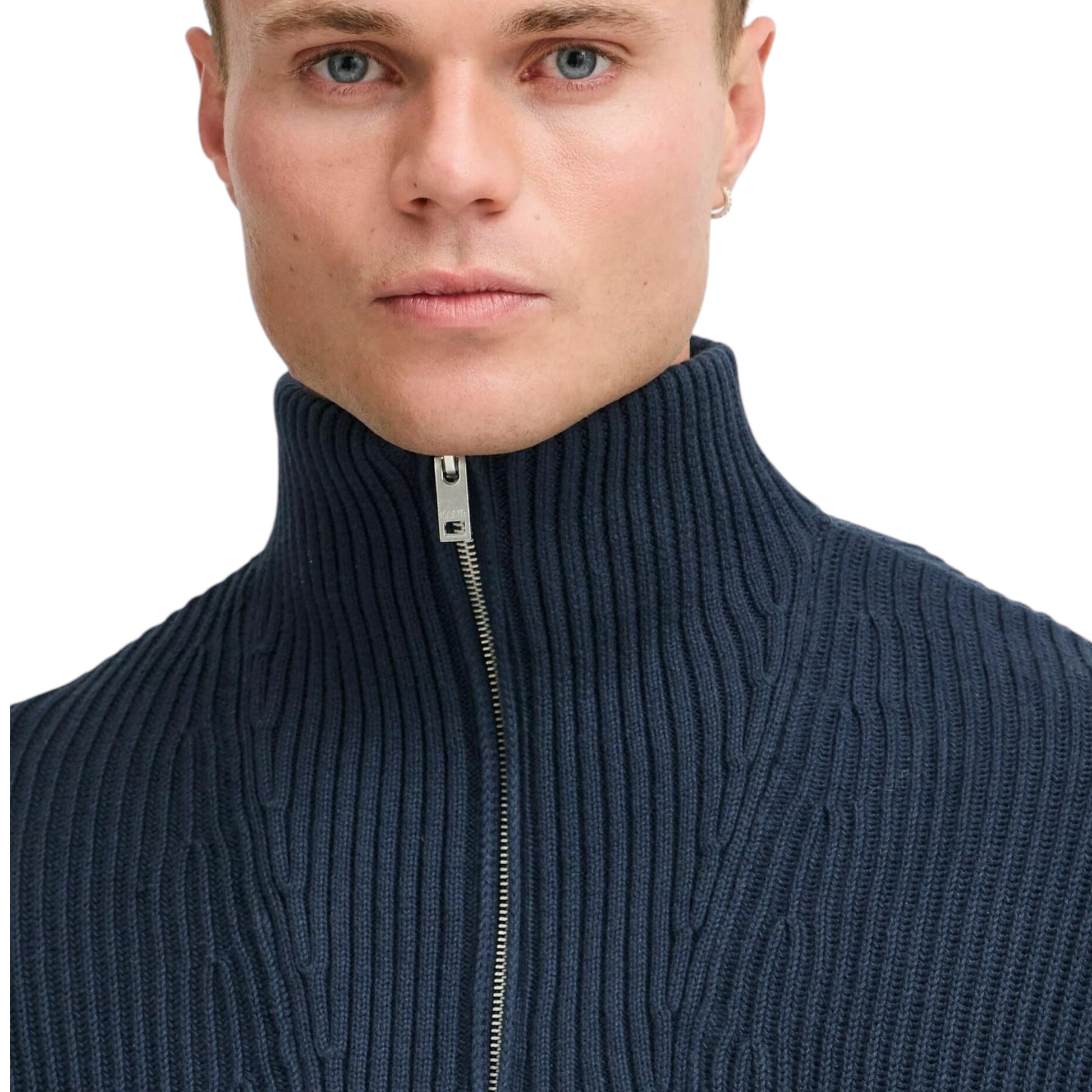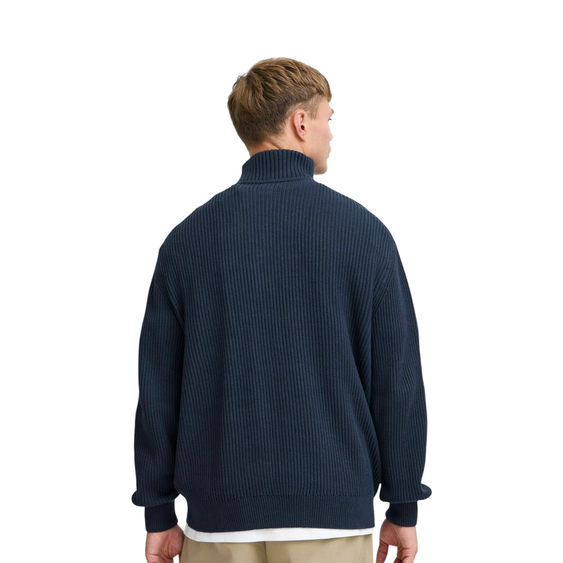 Maglia realizzata in cotone. Manica lunga, collo a vulcano con zip, fondo e polsini a costine.