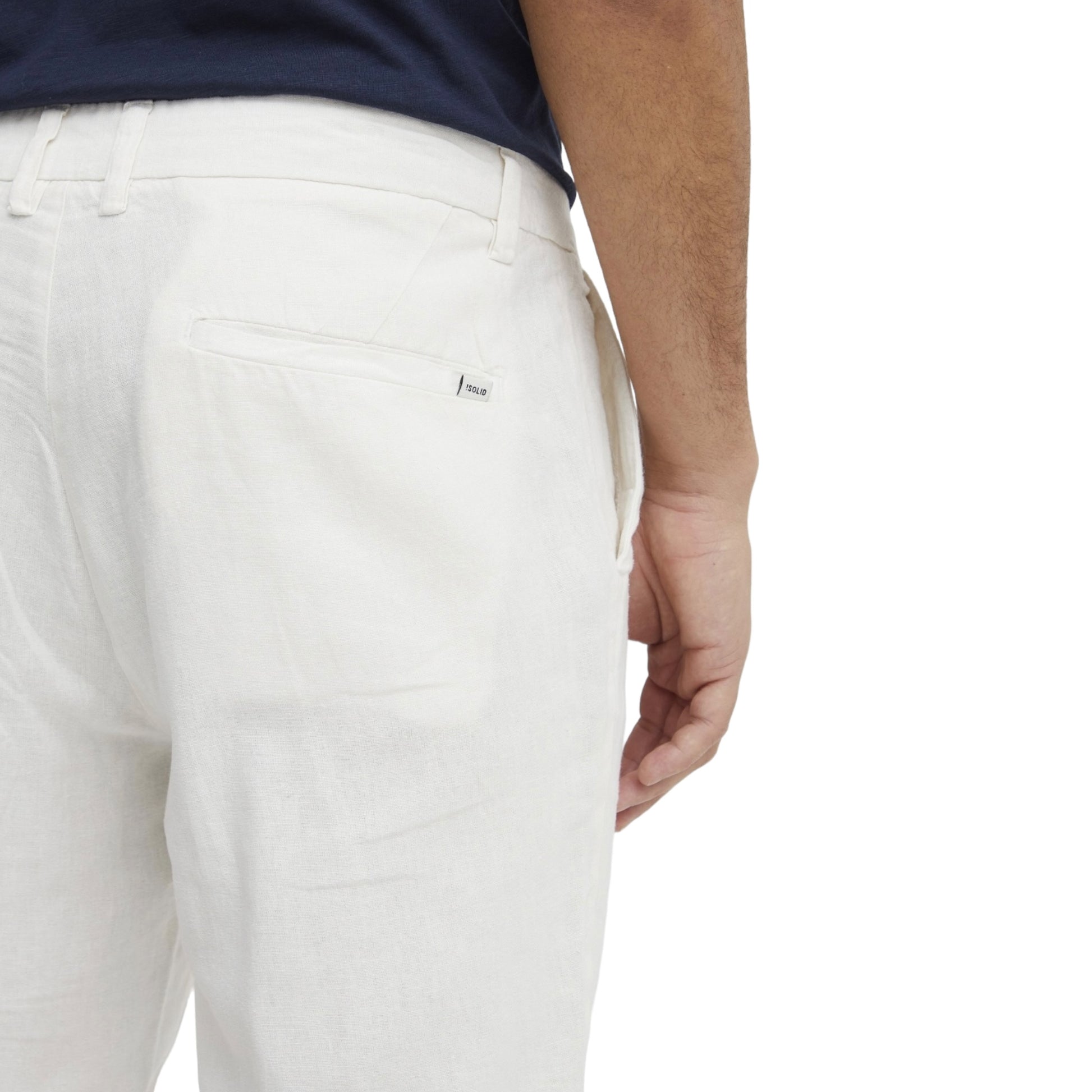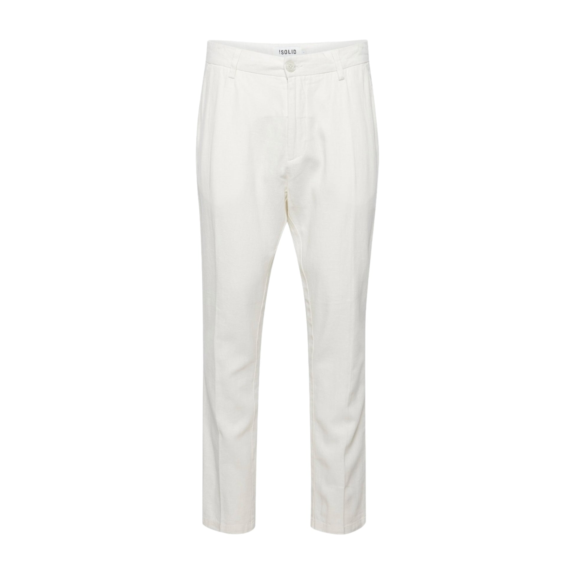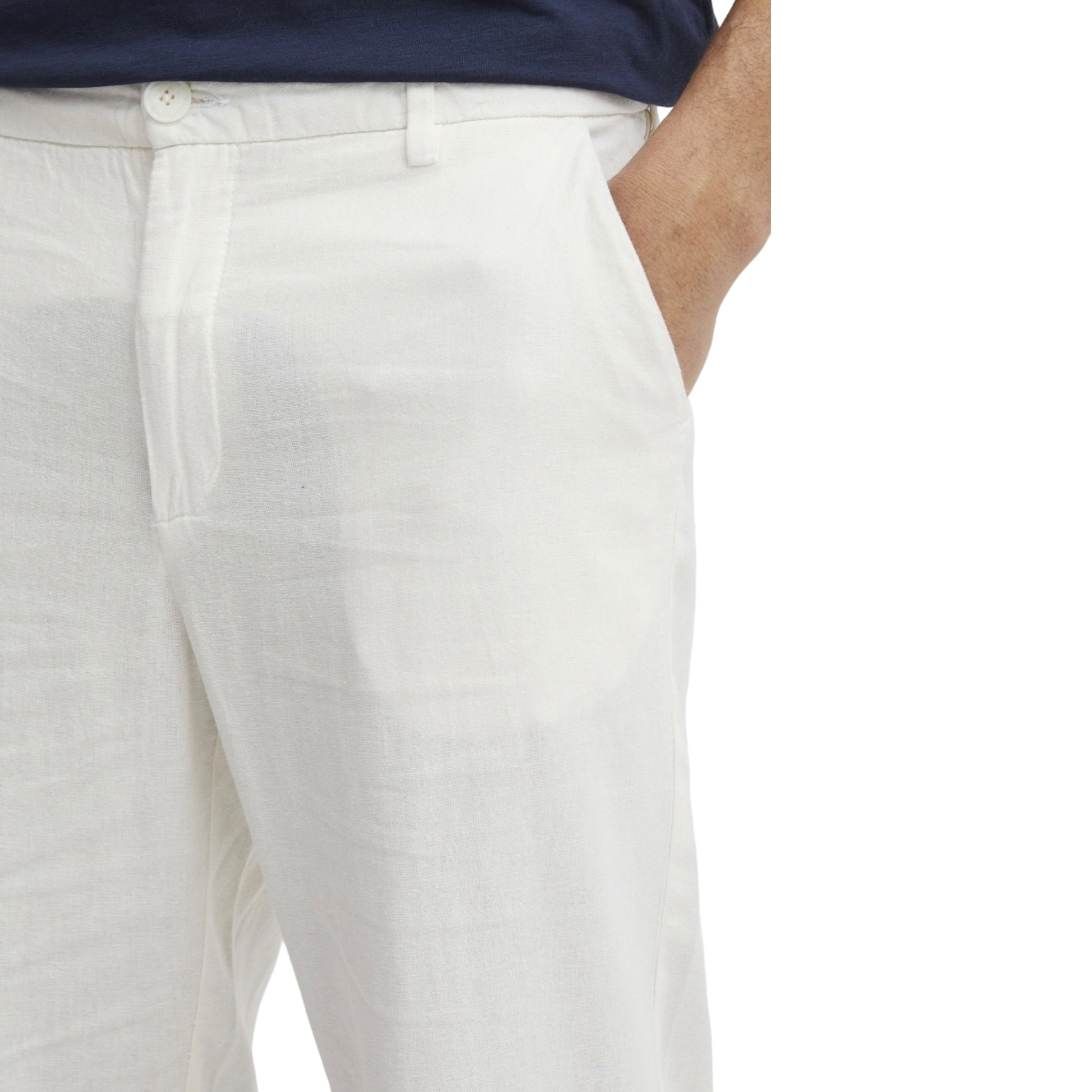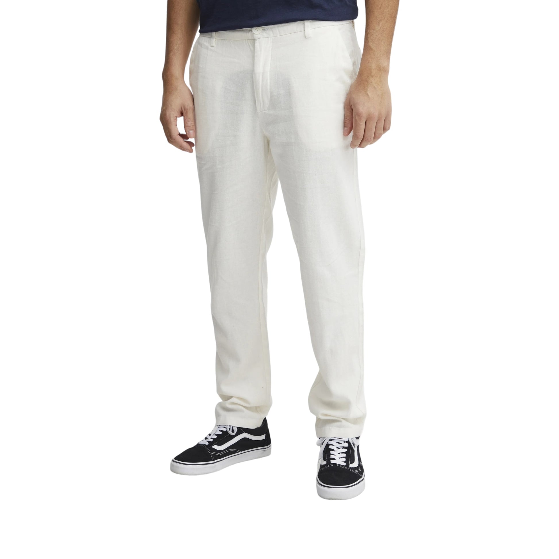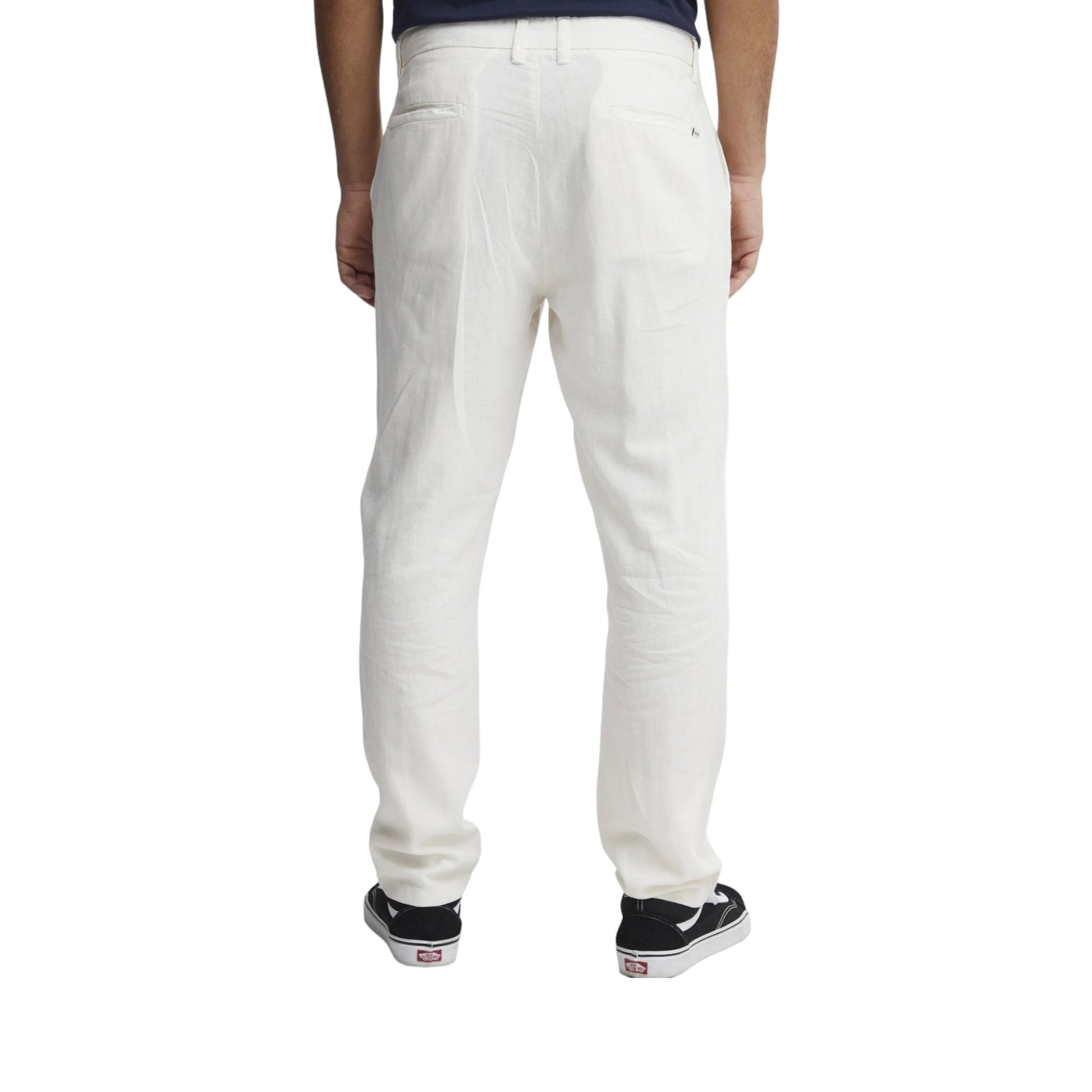 Pantalone realizzato in lino e viscosa con tasche a filo. Chiusura con zip e bottoni. Vestibilità regulart.