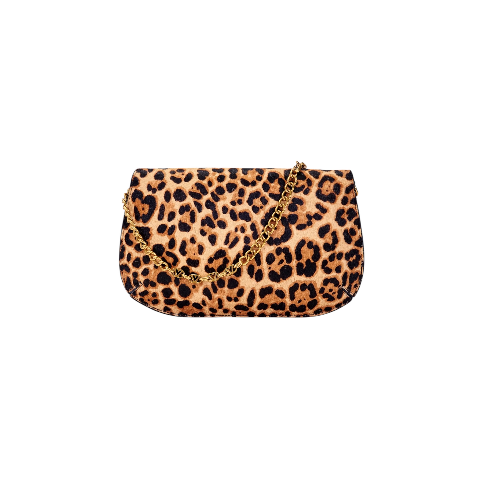 Borsa Butterfly a spalla in cavallino leopardato. Chiusura con bottoni a pressione con calamita. Dettaglio logo metal plate Vicolo frontale. Finiture anticate color oro. Tracolla con catena scorrevole removibile. La borsa può essere indossata sia come borsa a spalla che come borsa a mano. Scomparto interno in tessuto con taschina con cerniera. Dettaglio catena logata Vicolo.