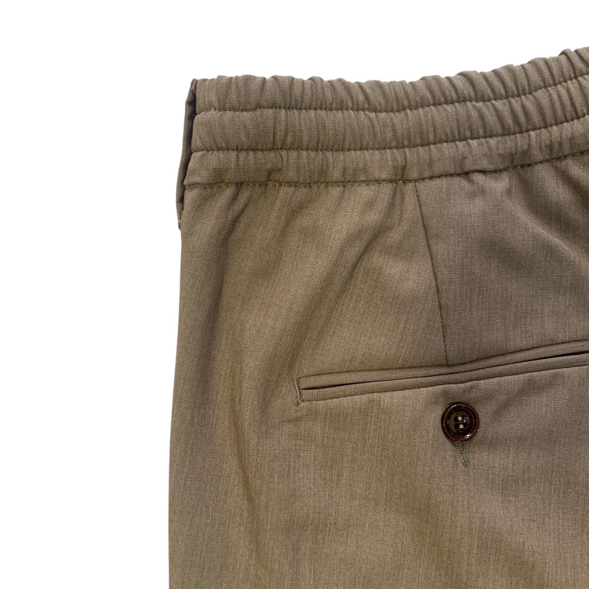 Pantalone realizzato in fresco lana, con tasche a filo, vita elasticizzata regolabile con laccio interno. Chiusura con zip e bottone. Risvolto alla caviglia. Vestibilità slim relax.